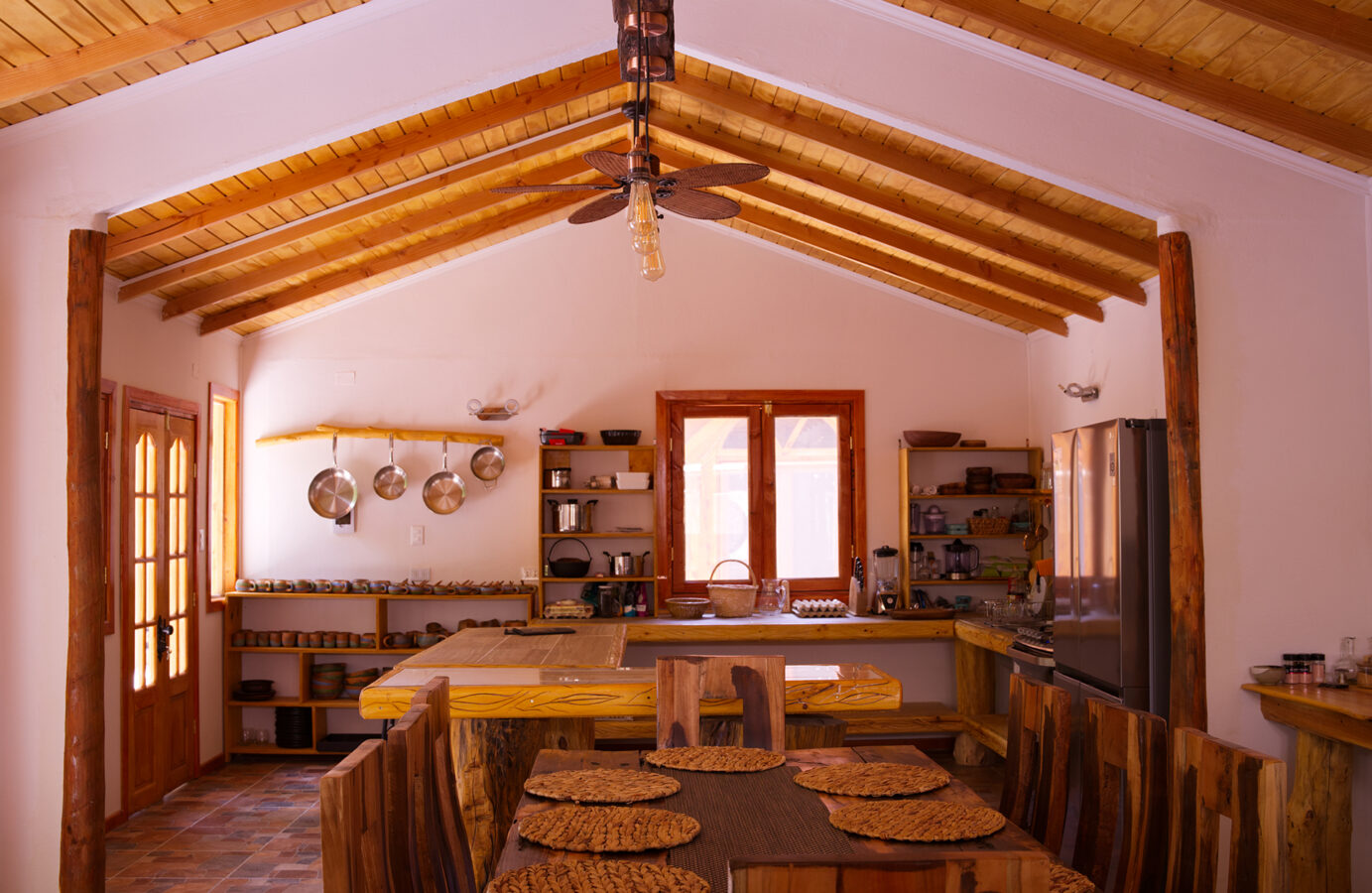 El espacio cuenta con 20 mats de yoga, 18 cojines de meditación, mantas, un espejo grande (que puede cubrirse según la actividad) y un gong para sesiones de sonido. Está diseñado para ofrecer comodidad, luminosidad y foco en mitad de Cochiguaz, Valle de Elqui.